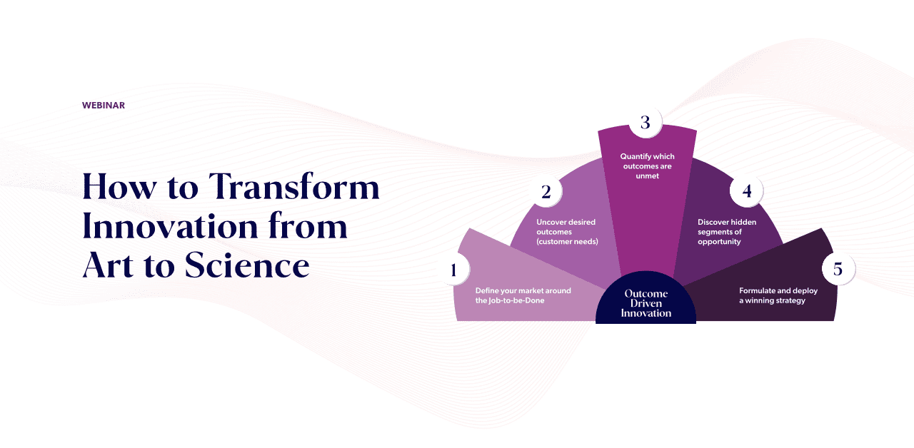 Our customer needs-based segmentation methodology works because it is built around a solid definition of what a customer need is. We know that people buy products and services to get a job done. We have discovered that customers consider between 50 and 150 metrics (their desired outcomes) when assessing how well a product or service enables them to successfully execute any job. These metrics are the customer’s needs. They power our needs-based segmentation methodology and our innovation process, Outcome-Driven Innovation (ODI).