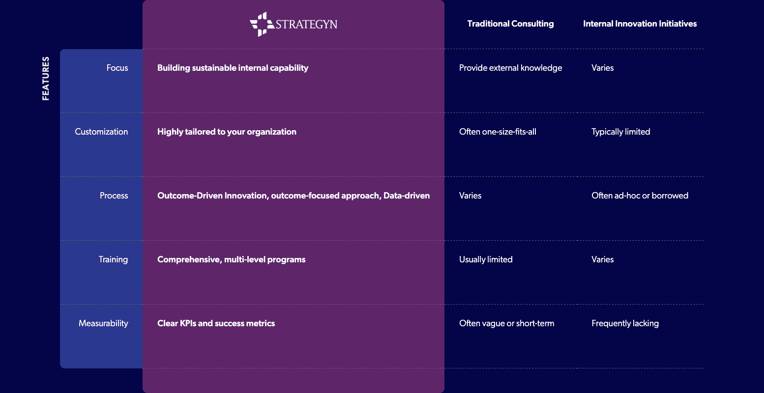 Our focus is setting up the Outcome-Driven Innovation process and ensuring your team is properly equipped to execute it.